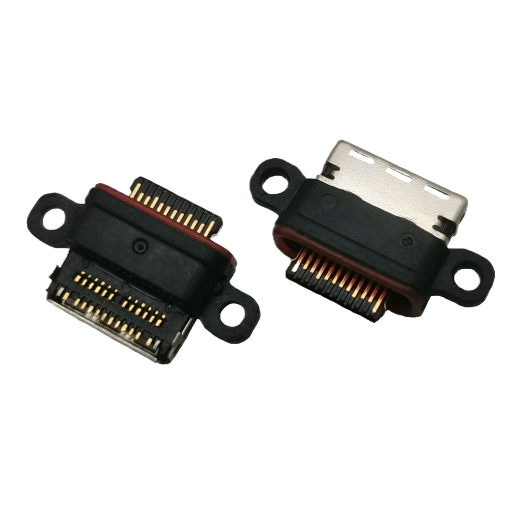 TYPE C 24P母座 板上雙貼SMT 舍片外漏 帶雙耳螺絲孔 CH=1.6MM L=7.55MM(華碩ROG2、3、5代游戲手機尾插)